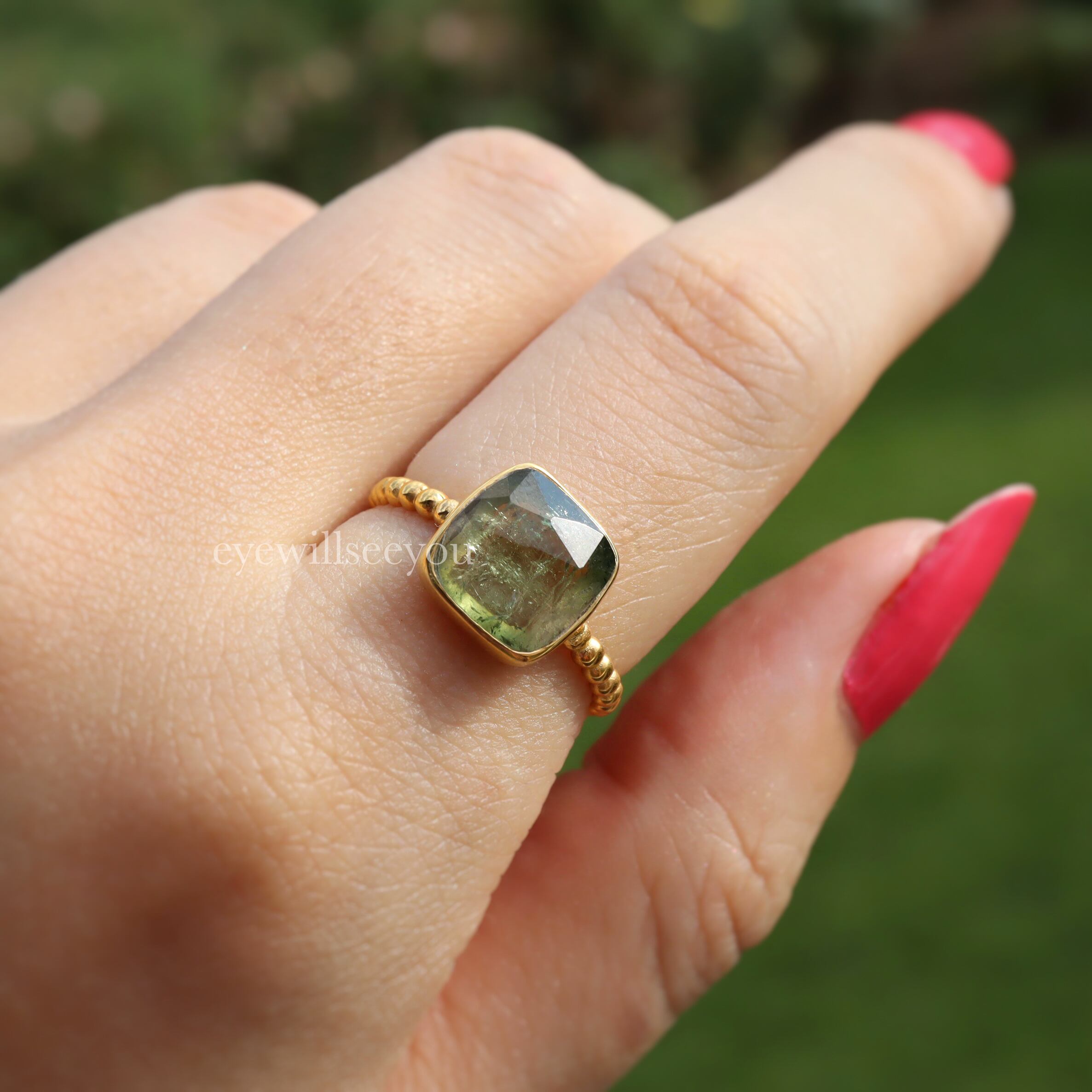 こちらのグリーントルマリンも、グリーンの濃淡のグラデーションがかかっており、ローズカットが透明感を引き立てています。