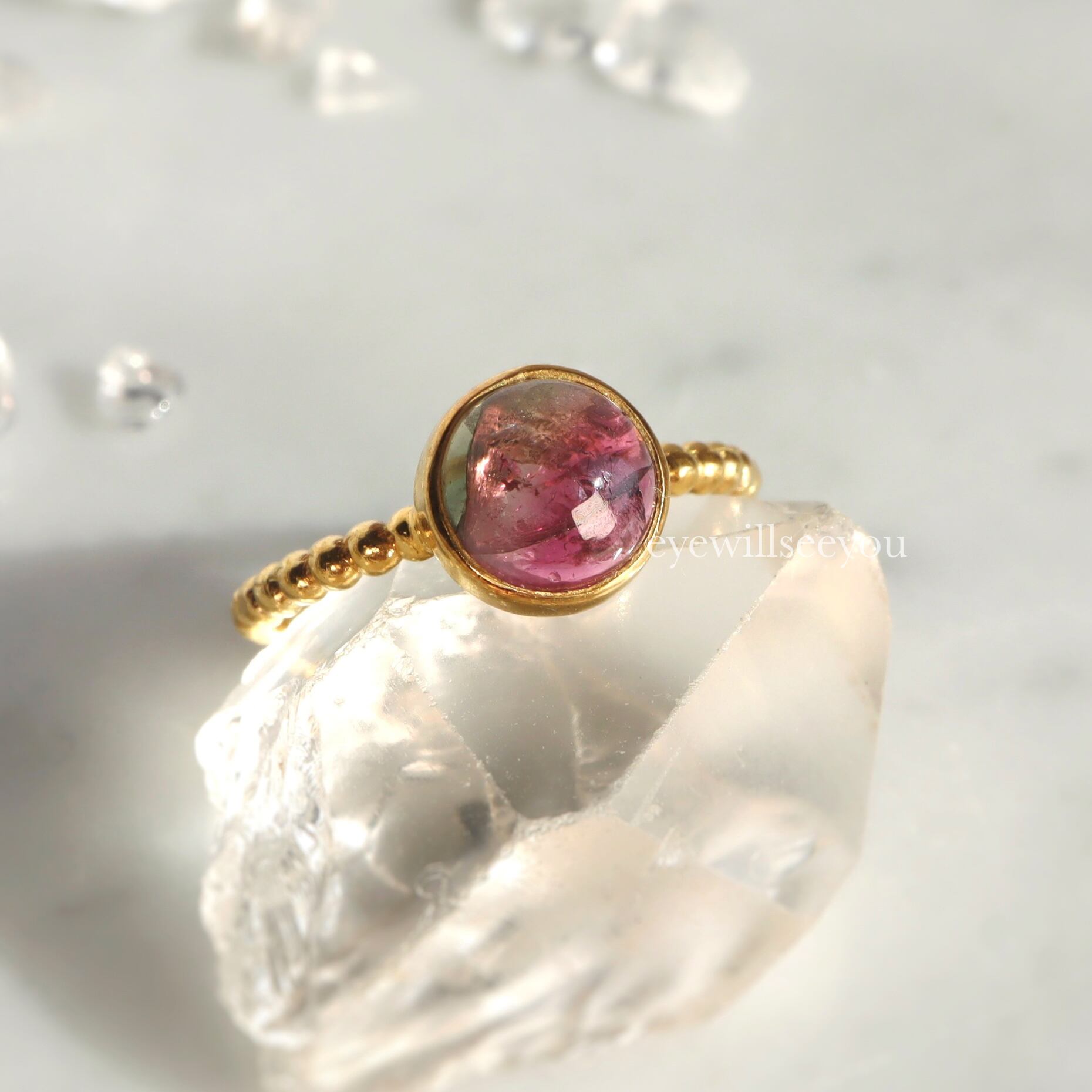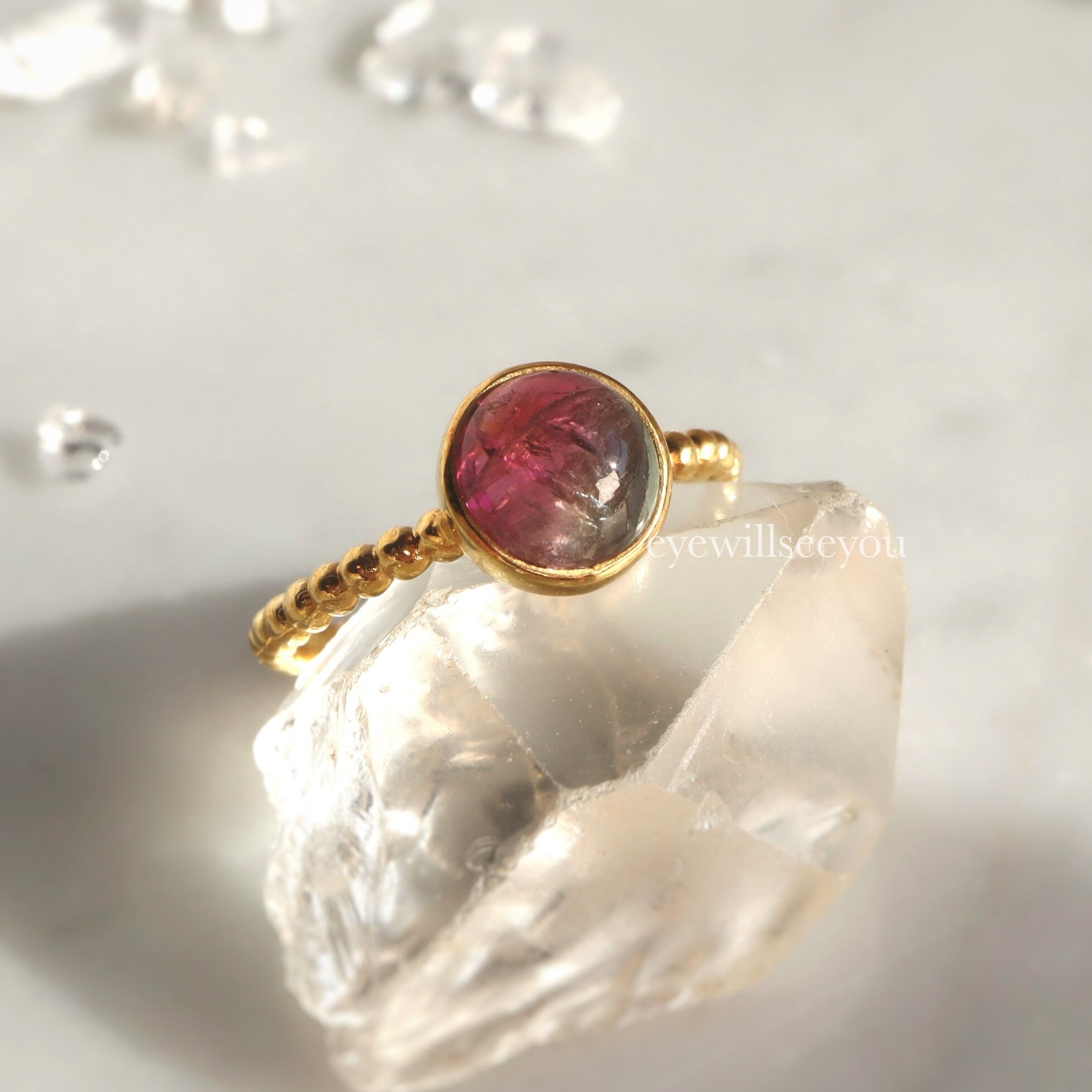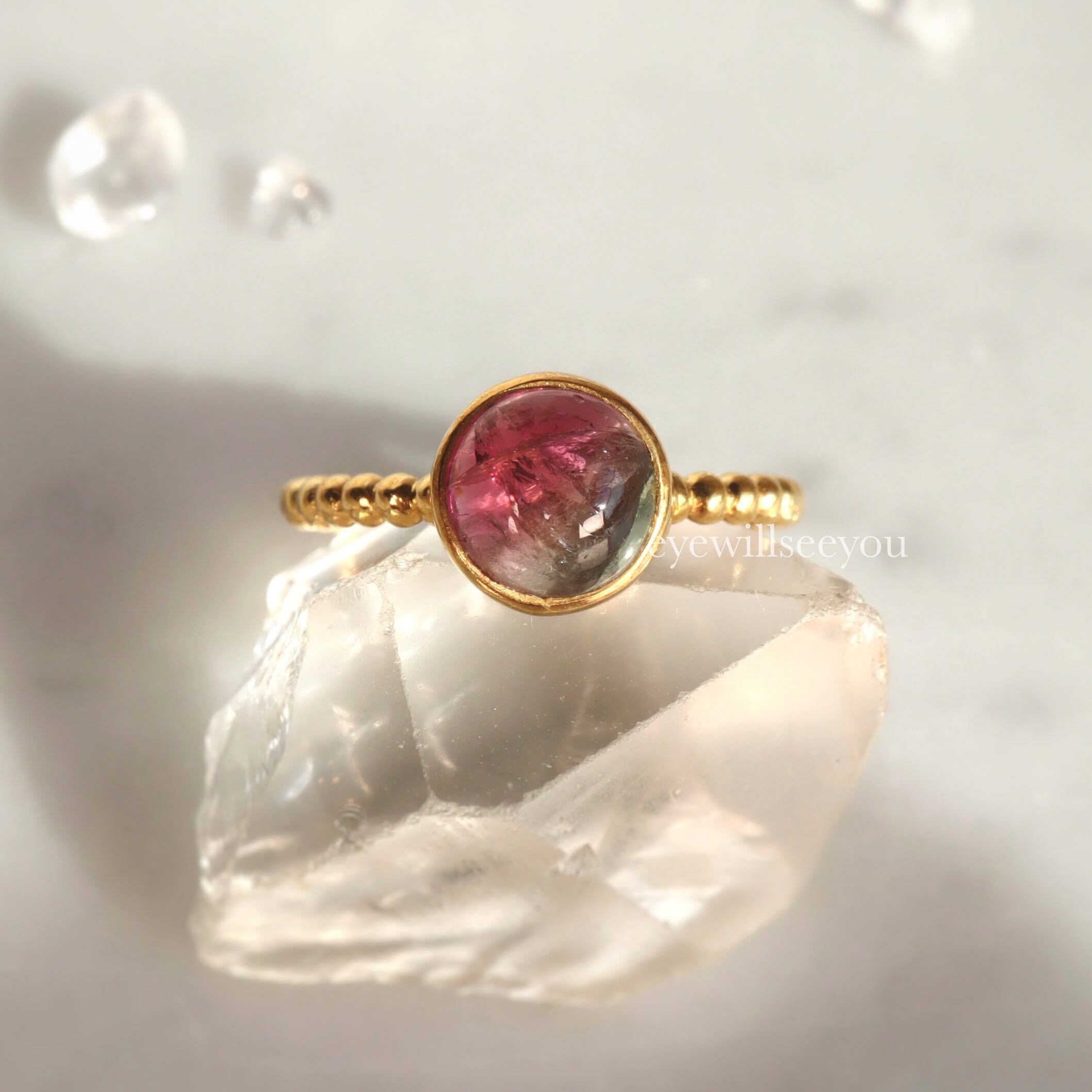 ◆こちらのバイカラートルマリンはキャンディのように丸くてツヤのあるカボションで、