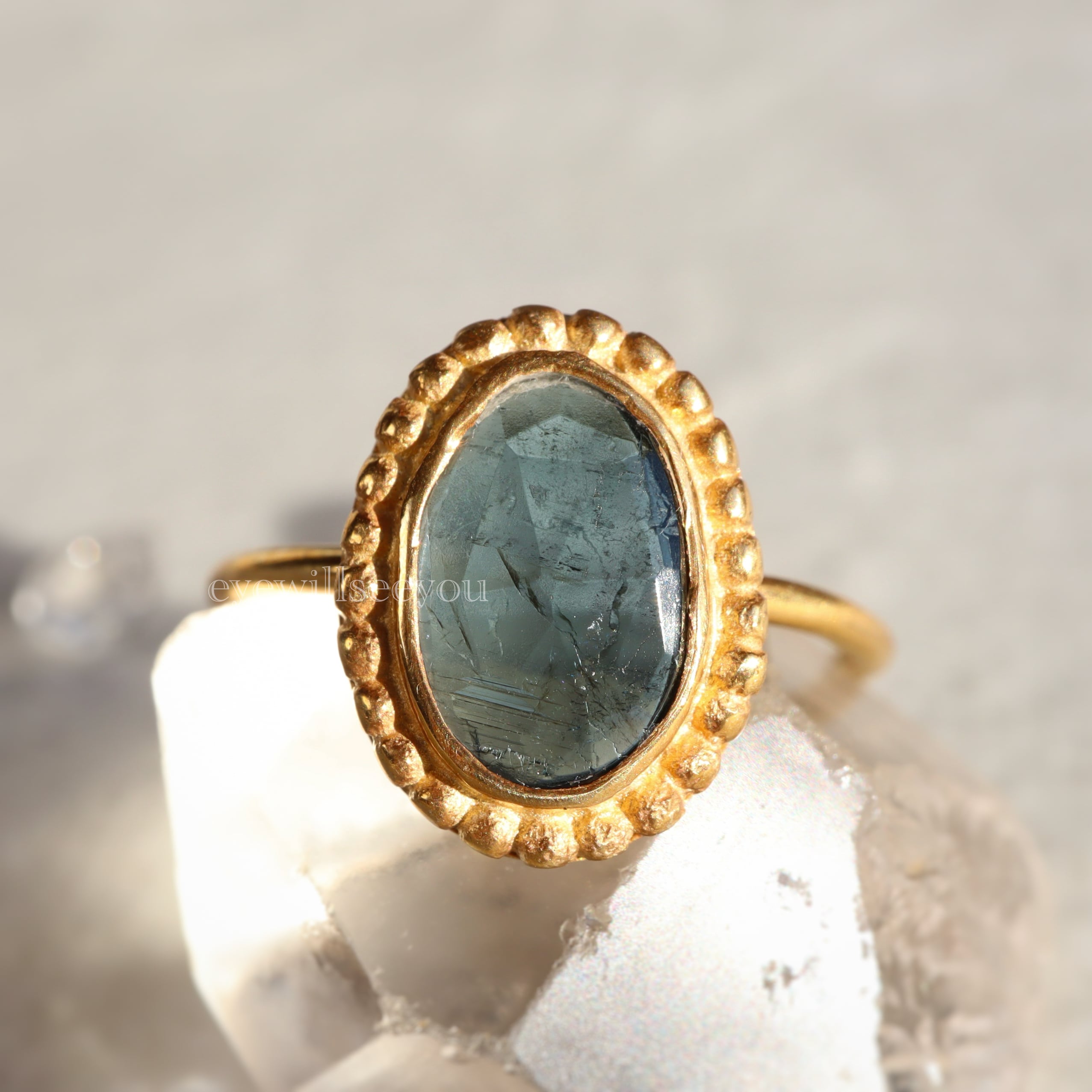 Indicolite tourmaline インディゴライトトルマリン グラニュレーションリング