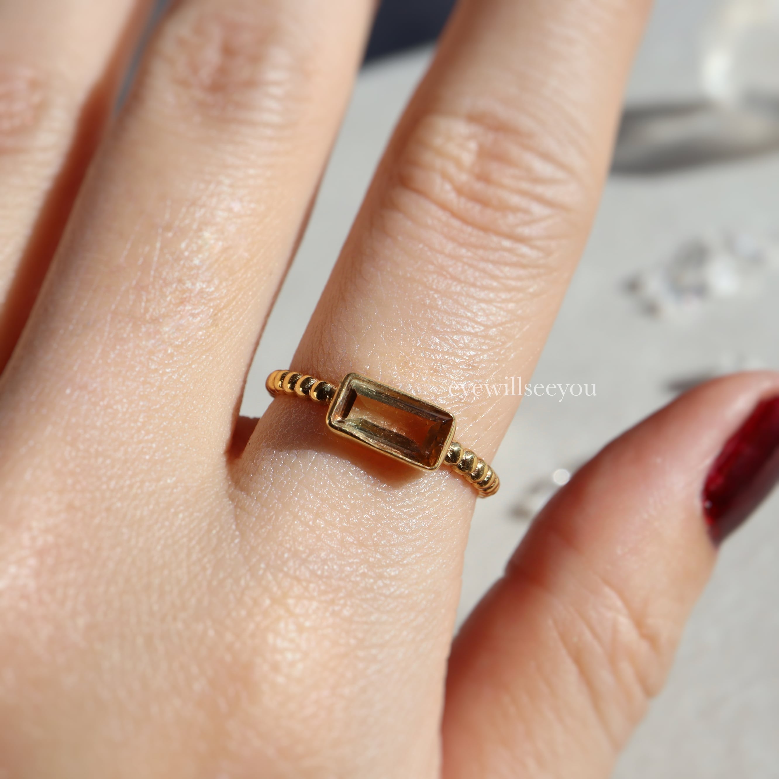 横長のストーンを使ったリングは重ね付けにもおすすめです。