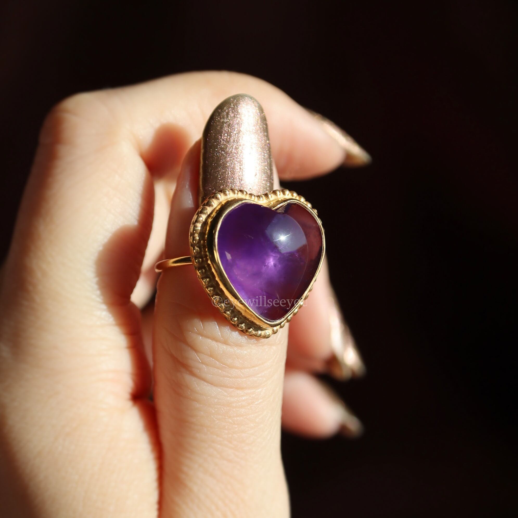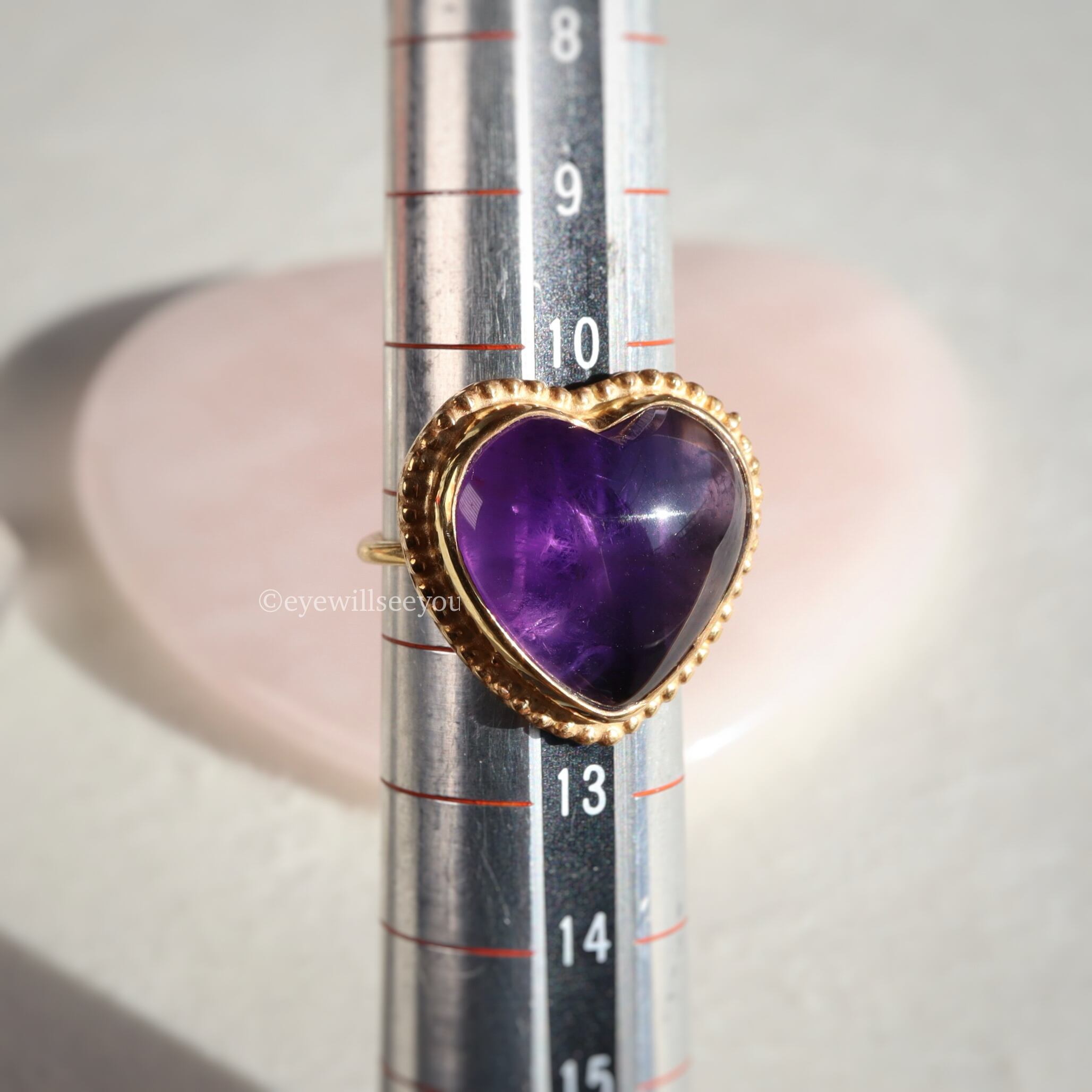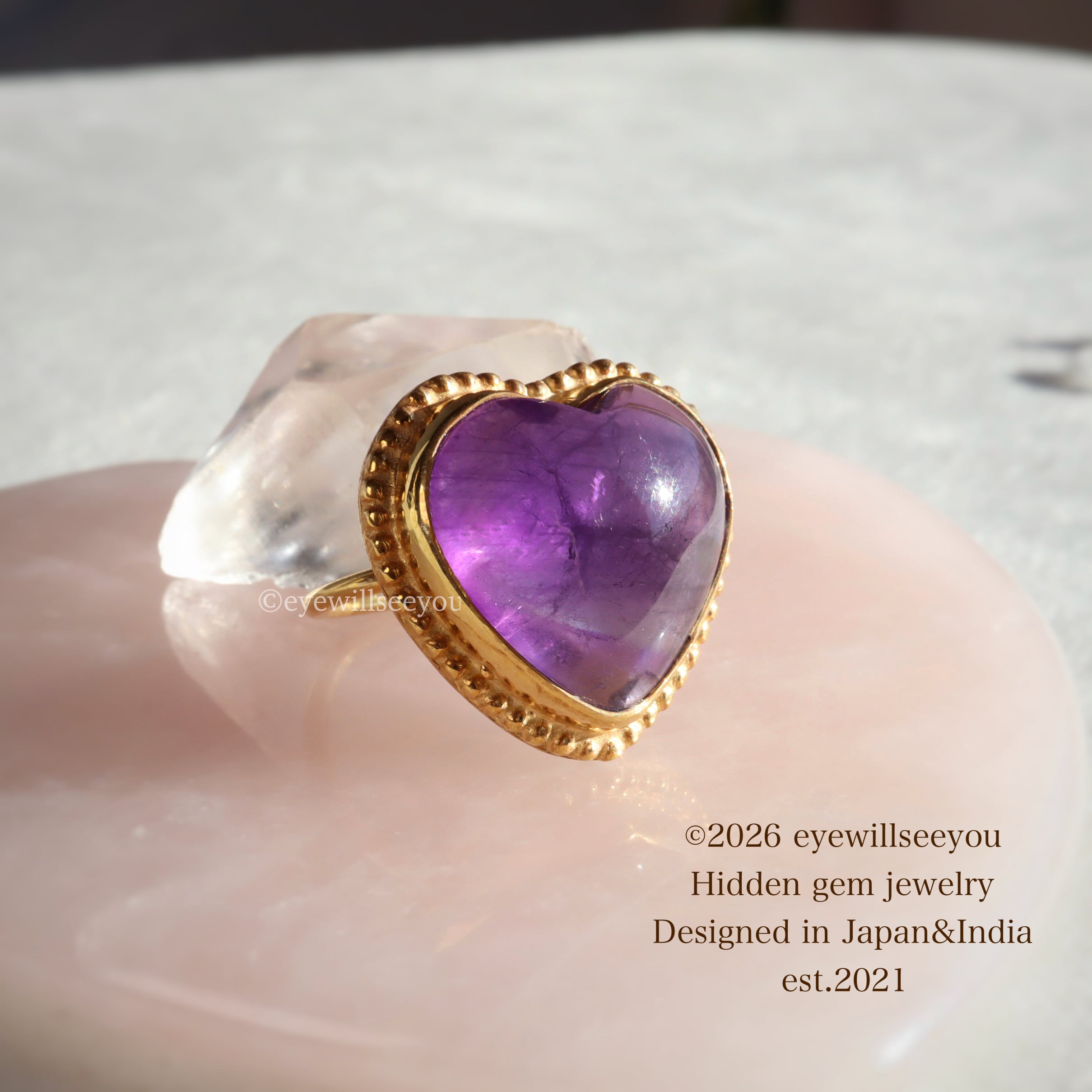 Amethyst granulation heart ring 大粒アメジスト ハートカボション グラニュレーションリング