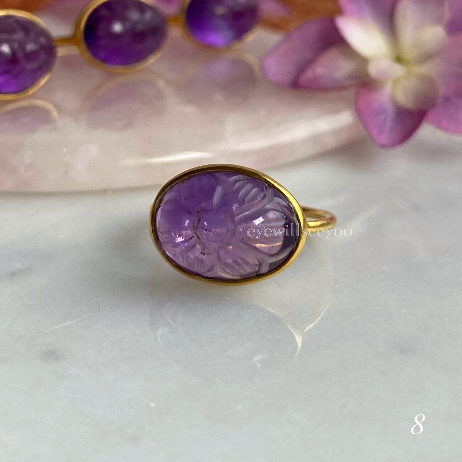 (8号目安) Flower carving ring アメジスト フラワーカービングリング