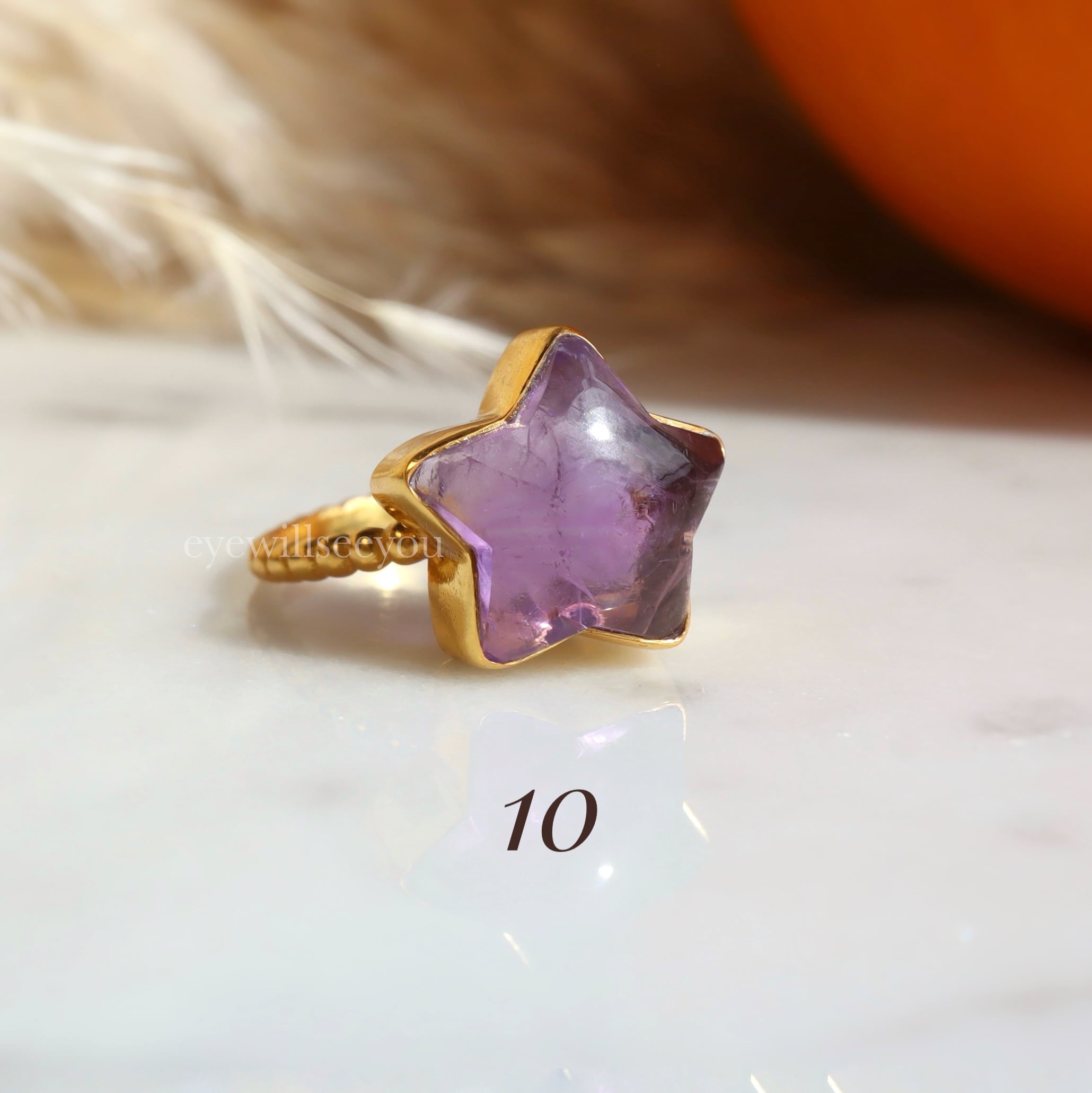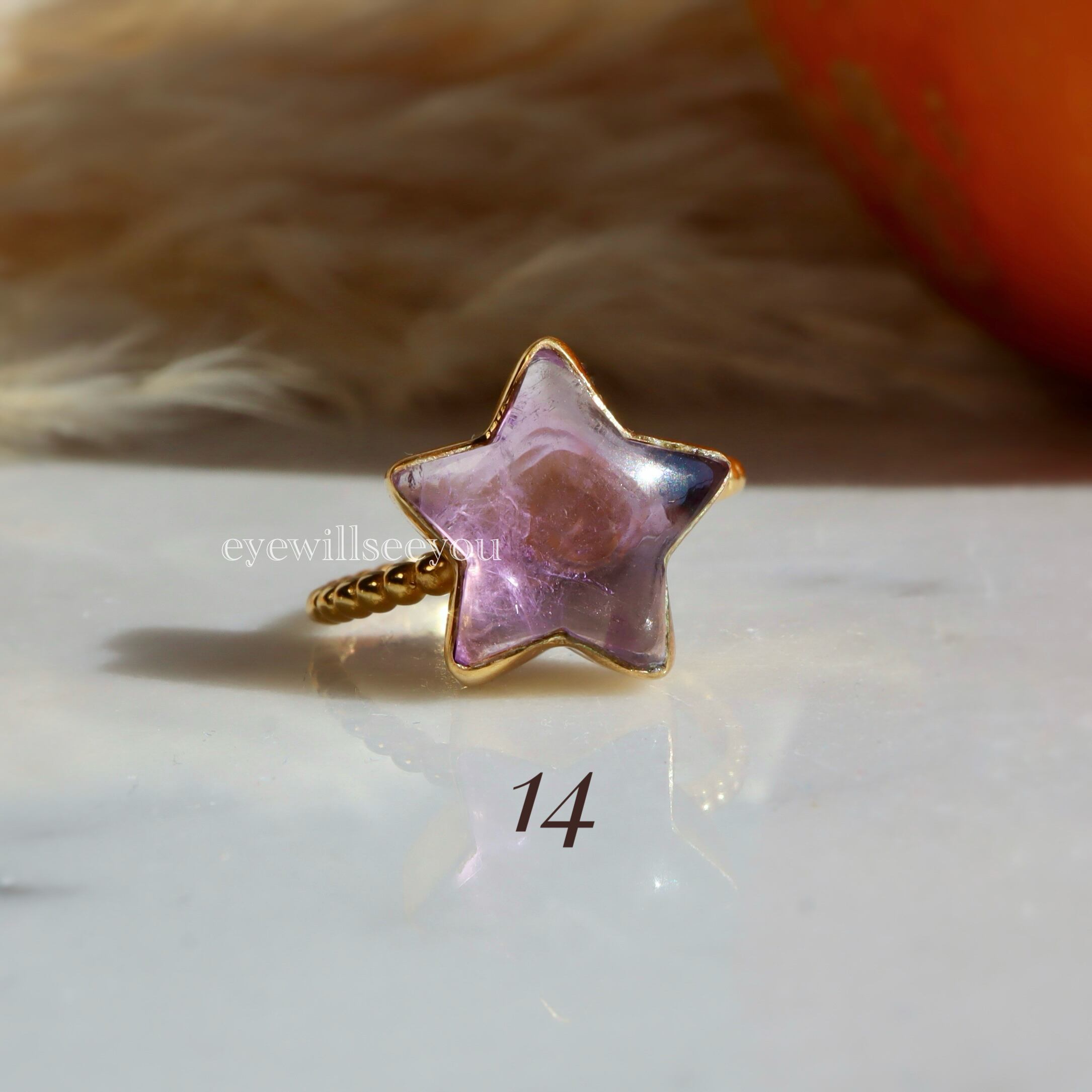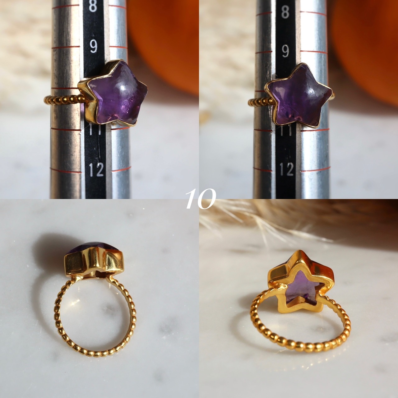 ぷっくりした星形のツヤのあるアメジストのカボションリングです。