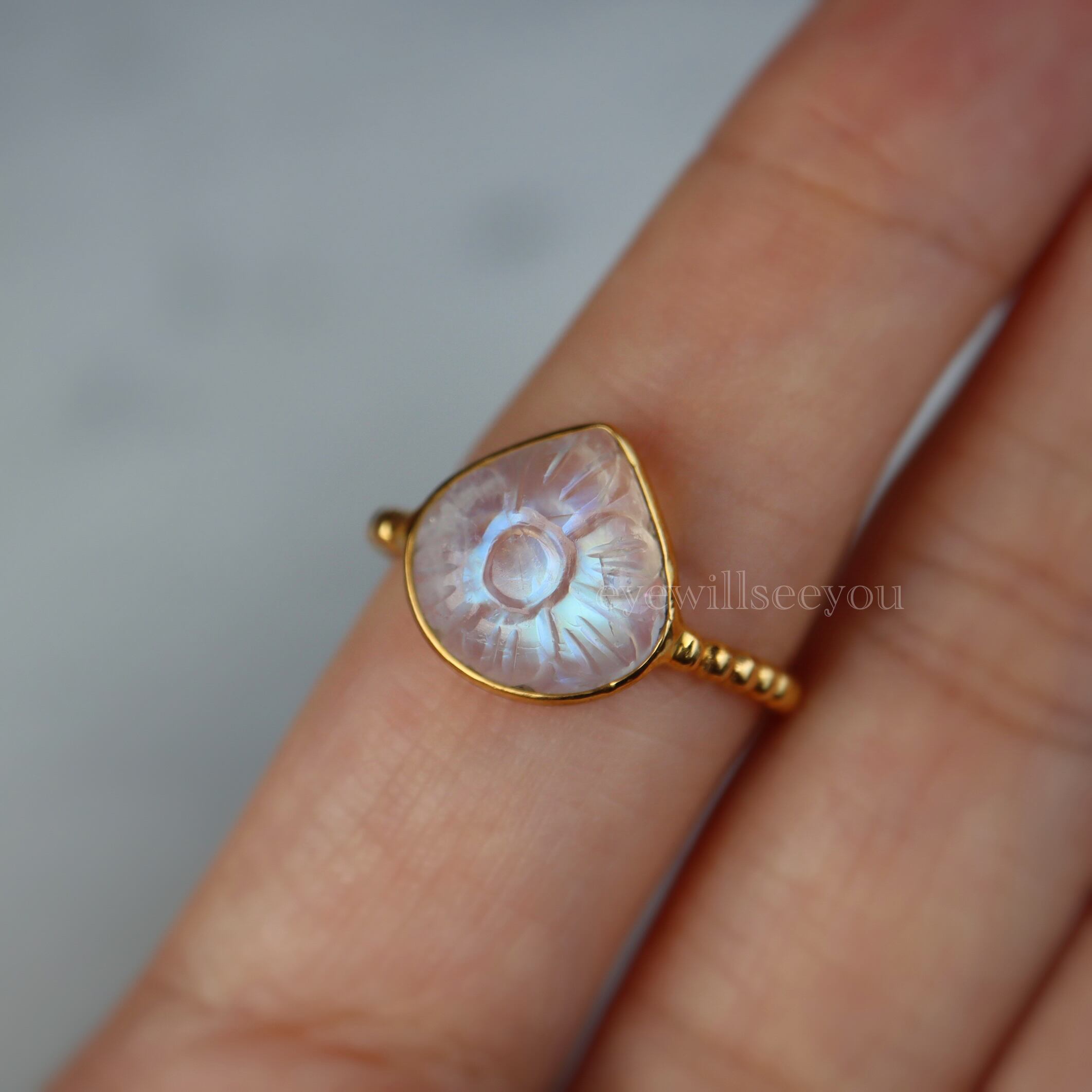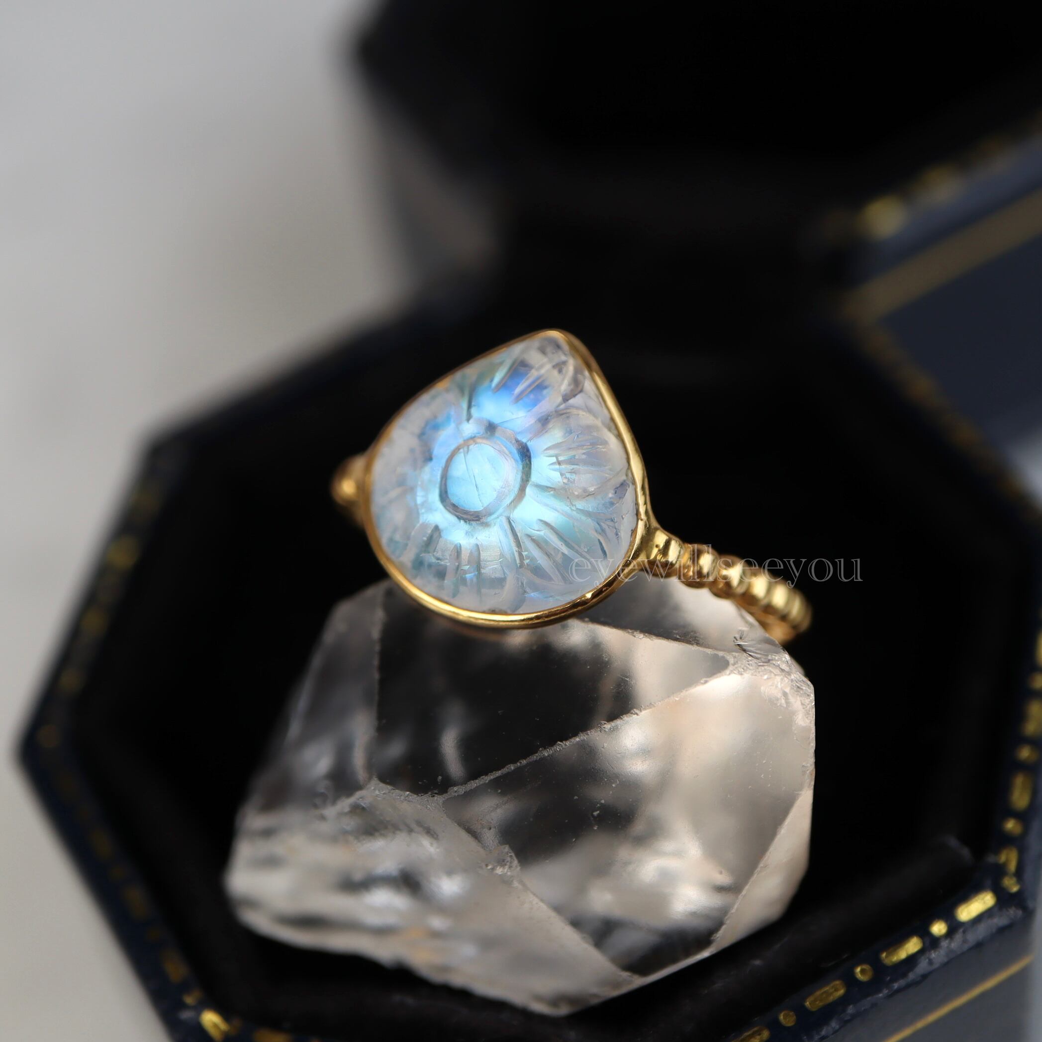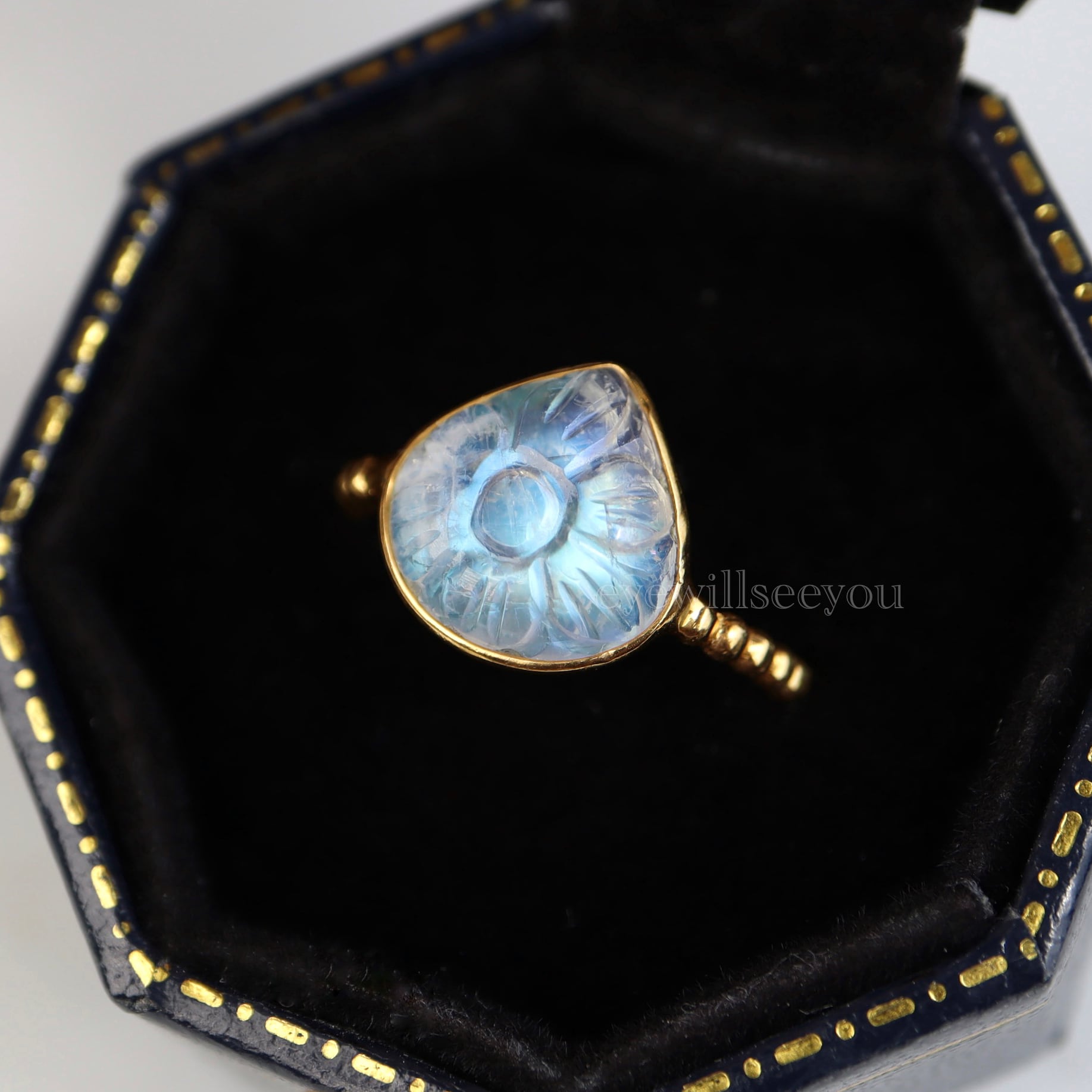 (12.5号) Granulated carving ring レインボームーンストーン グラニュレーションカービングリング マロンシェイプ