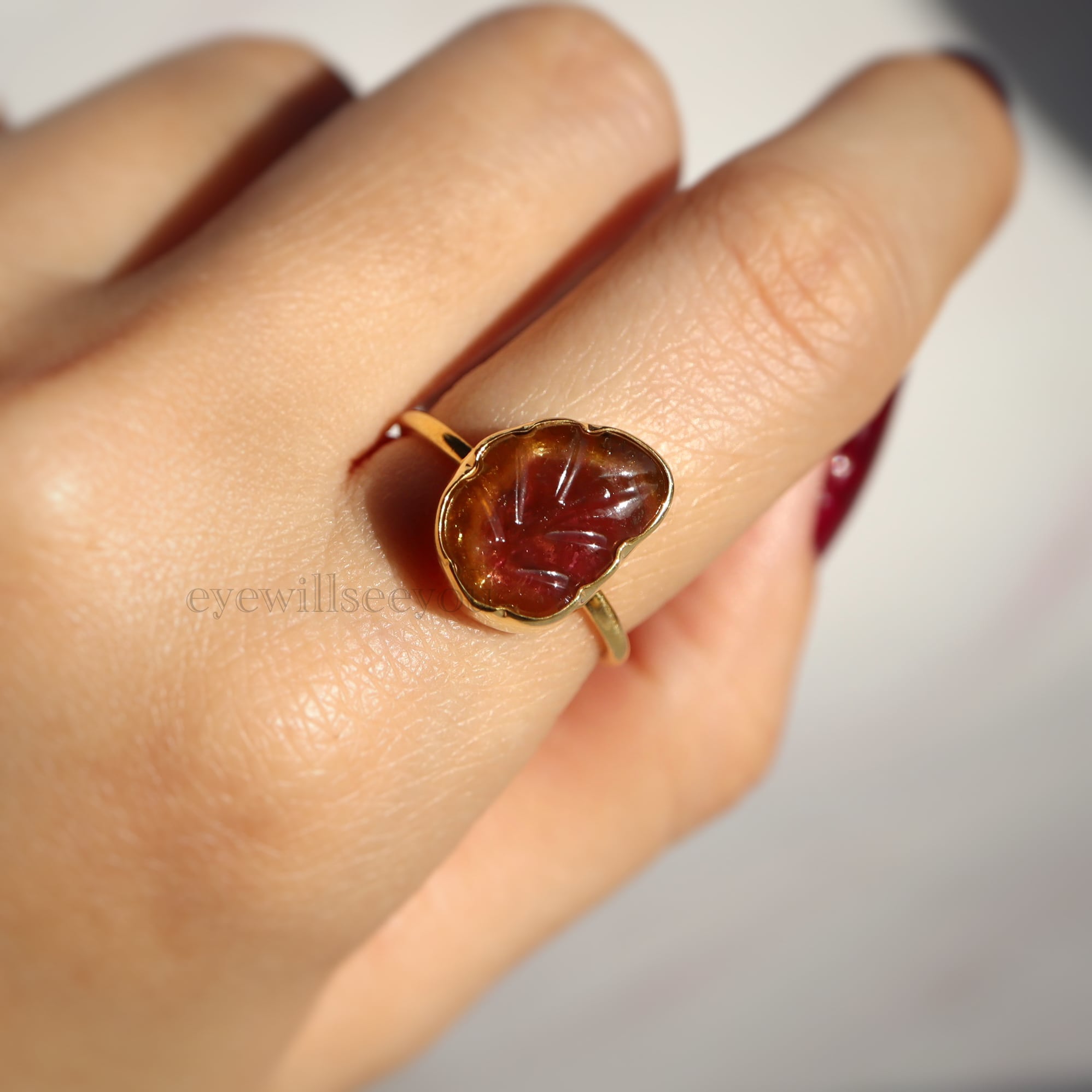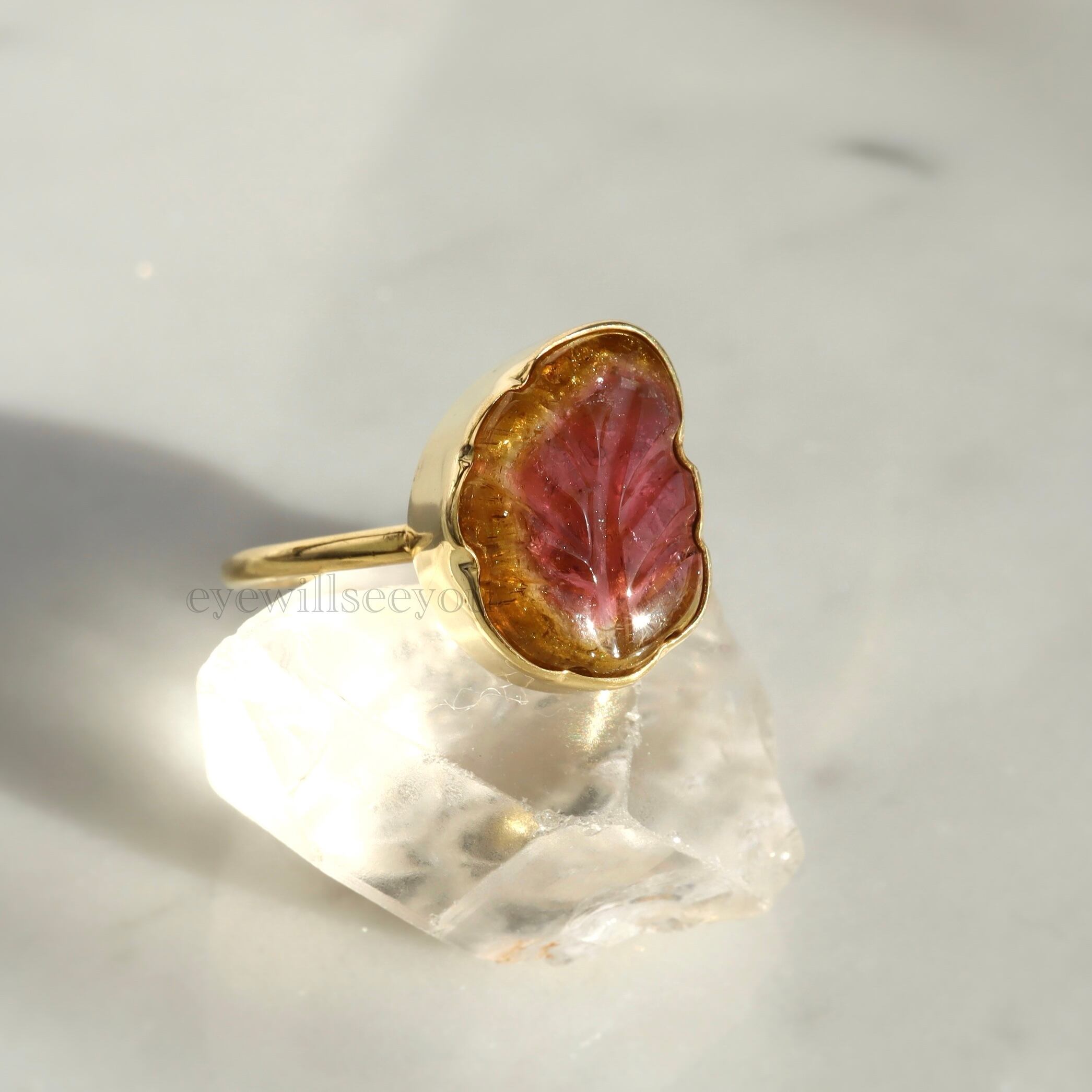 (11号) Watermelon tourmaline leaf ウォーターメロントルマリン リーフカービングリング