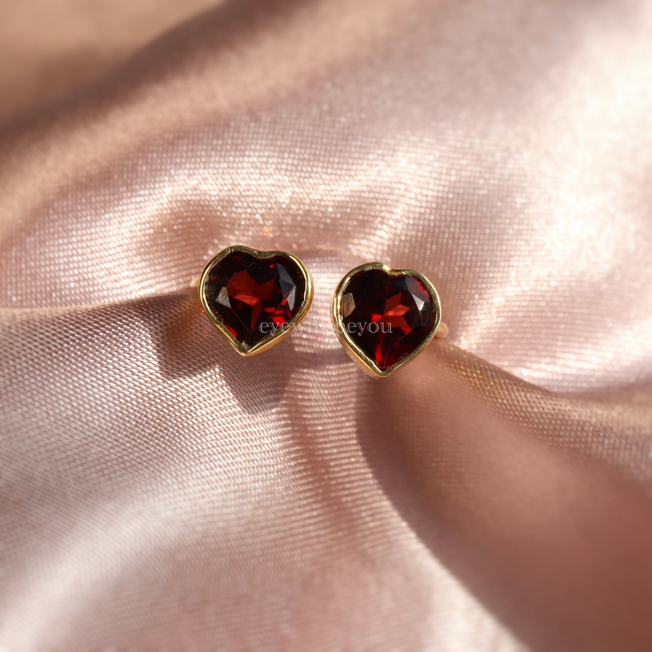 ハートのオープンリングをファセットカットのキラキラとしたナチュラルガーネットで製作いたしました。